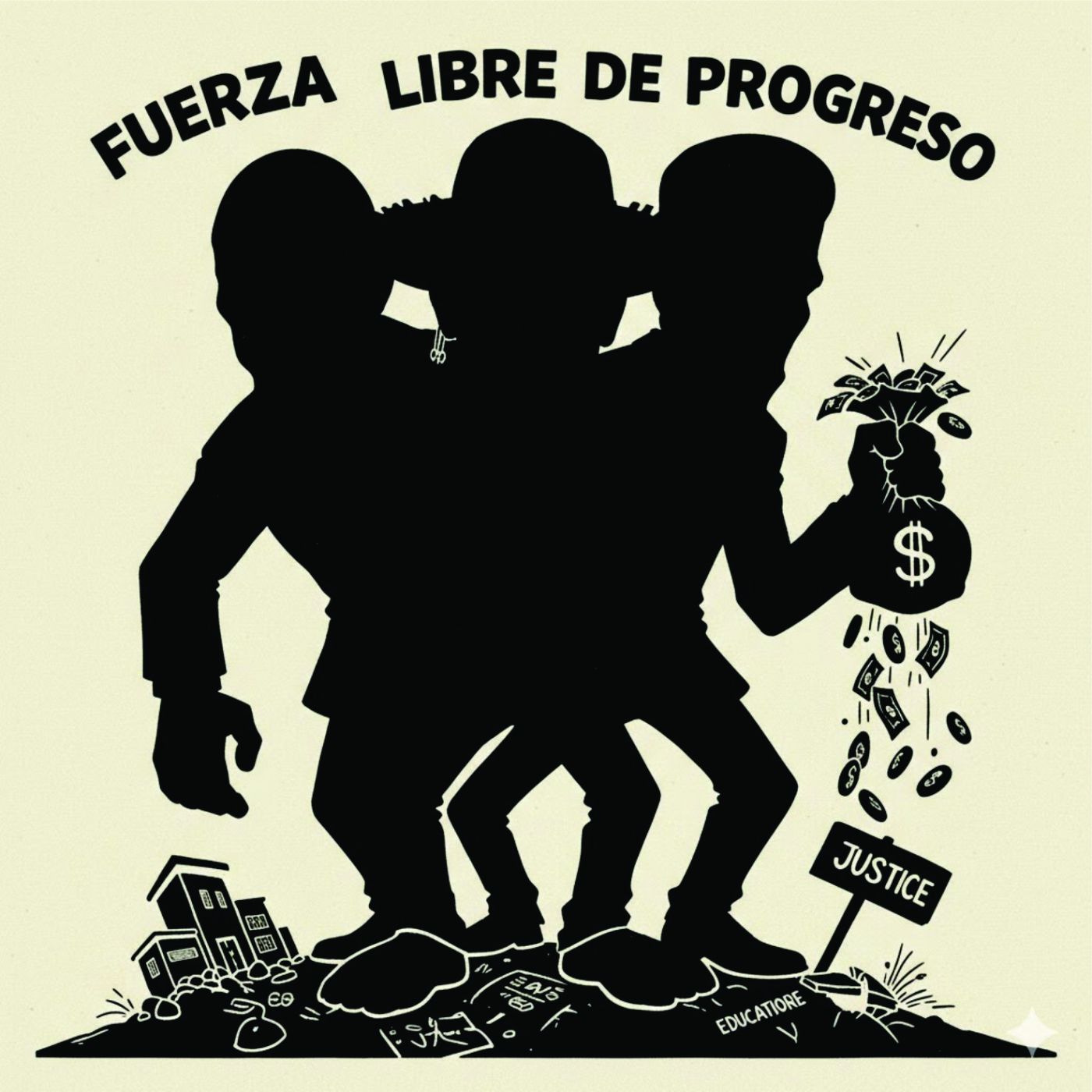 Este organismo mutante nació en 2016. La cabeza Fuerza aportó una diestra disciplina de la demolición moral, demostrando que «lo que se hereda también se hurta». Su mayor logro ha sido gobernar desde el escaño: sin banda presidencial, pero con una banda de los más prontuariados. Ha usado la «Cuestión de Confianza» y la «Vacancia por Incapacidad Moral» (¿es en serio?) para demoler gabinetes enteros, eliminando de su camino a ministros clave que obstruían su crecimiento y buscaban abortar a la criatura antes de que terminara de devorar las instituciones. La cabeza Libre se puso el sombrero del pueblo para que el asalto pareciera una «revolución». Esta facción siniestra defiende los derechos de los «no civiles», de los que caminan por la sombra, agitando una retórica de lucha de clases para distraer a los incautos mientras se reparten el botín. Y para que nada falte, la cabeza Progreso funciona como el «Yape» institucional; es la encargada de las transacciones rápidas que aseguran que el dinero fluya «como cancha» bajo la mesa.